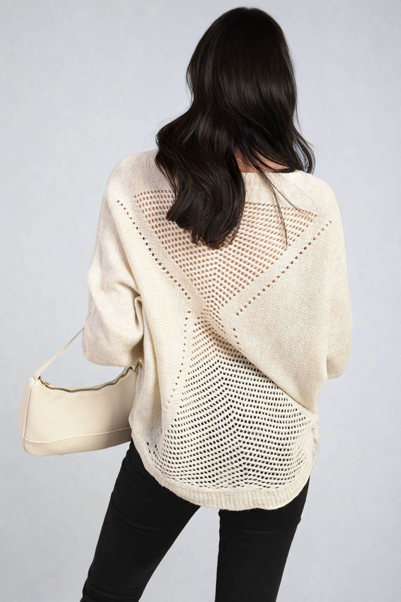 Wrap yourself in cozy style with the Florencia Crew Neck Back Patterned Knitted Jumper. This comfy jumper is perfect for keeping warm while looking effortlessly chic. With its unique back pattern, it adds a fun twist to your outfit, making it a must-have for any casual day out. Ideal for layering or wearing on its own, it's your go-to for both comfort and style.