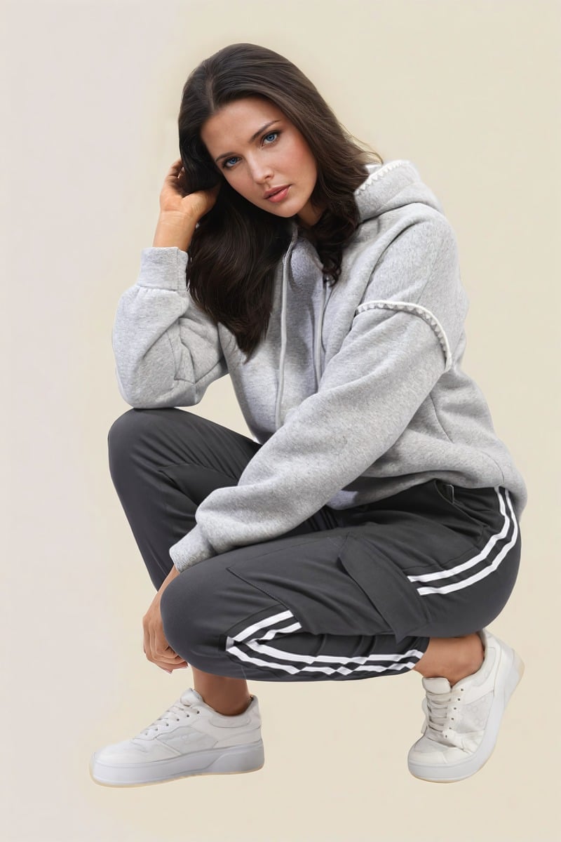 Equipped with practical cargo pockets, these trousers offer ample space for all your essentials. Keep your phone, keys, and wallet within easy reach without sacrificing style. The pockets' sleek design maintains a streamlined look, blending functionality with fashion. ?