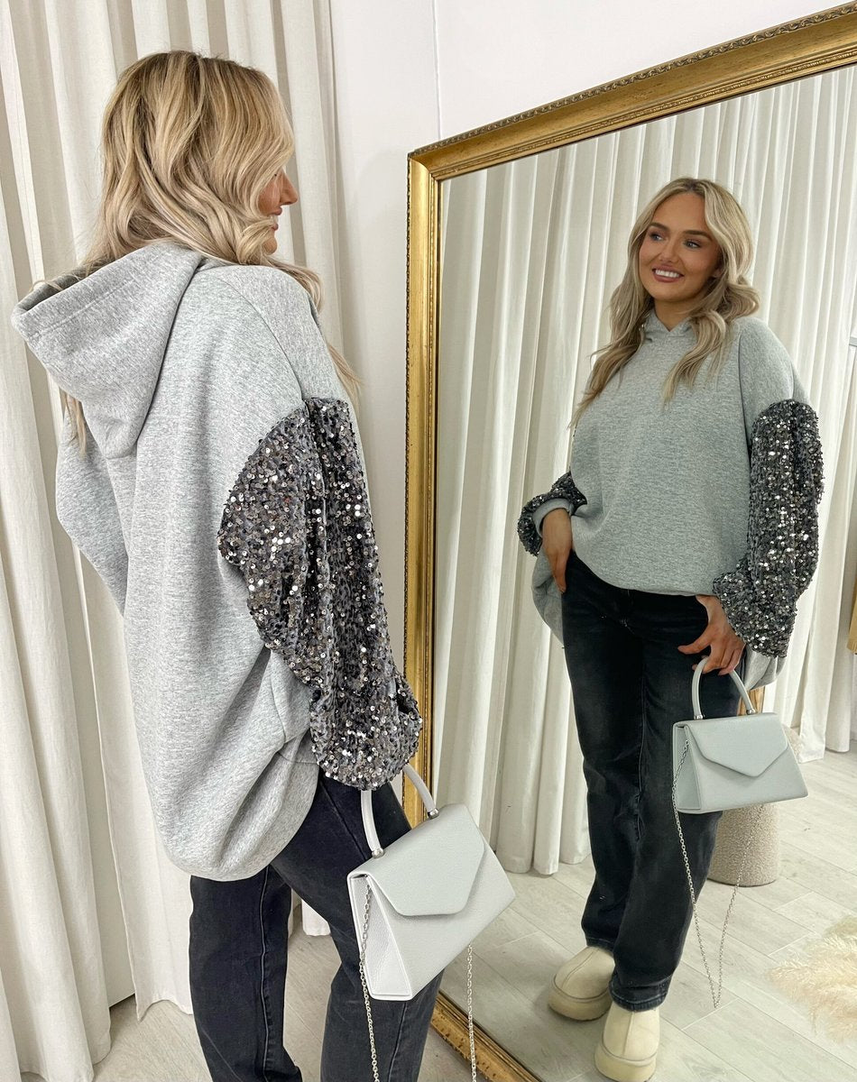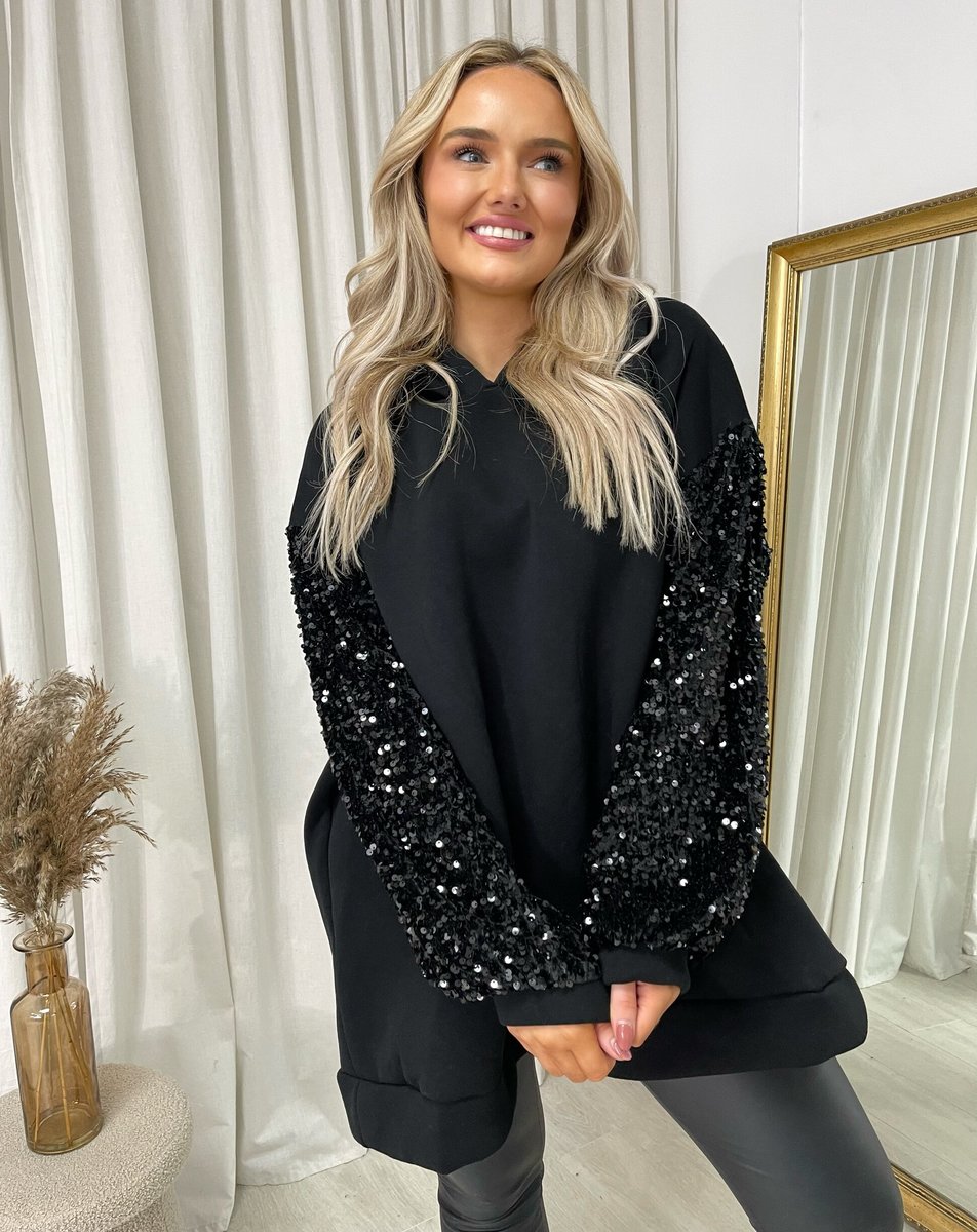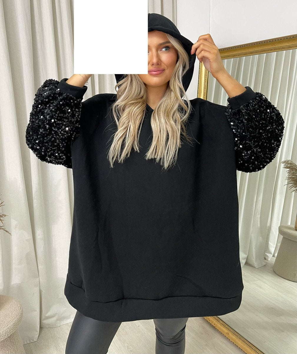 Oversized Sequin Sleeve Knitted Hoodie Jumper