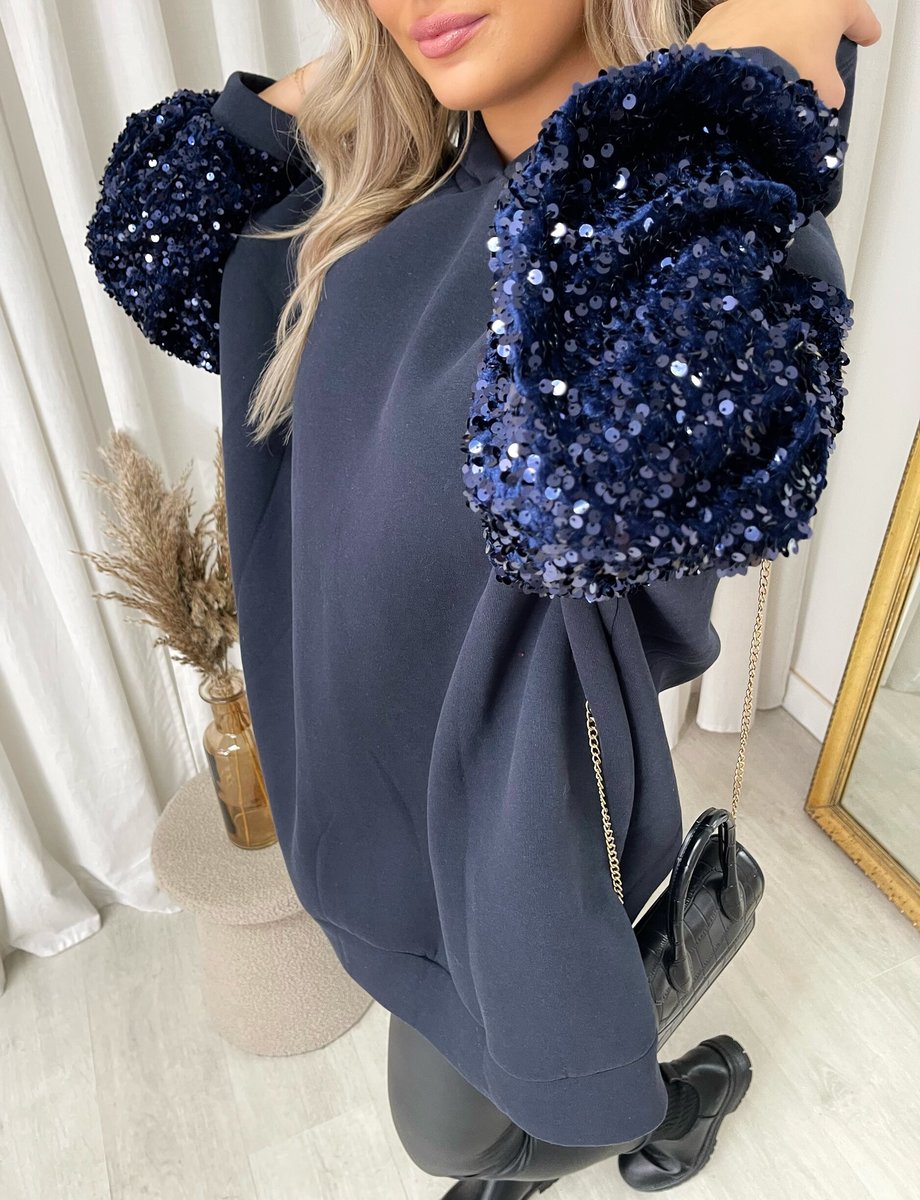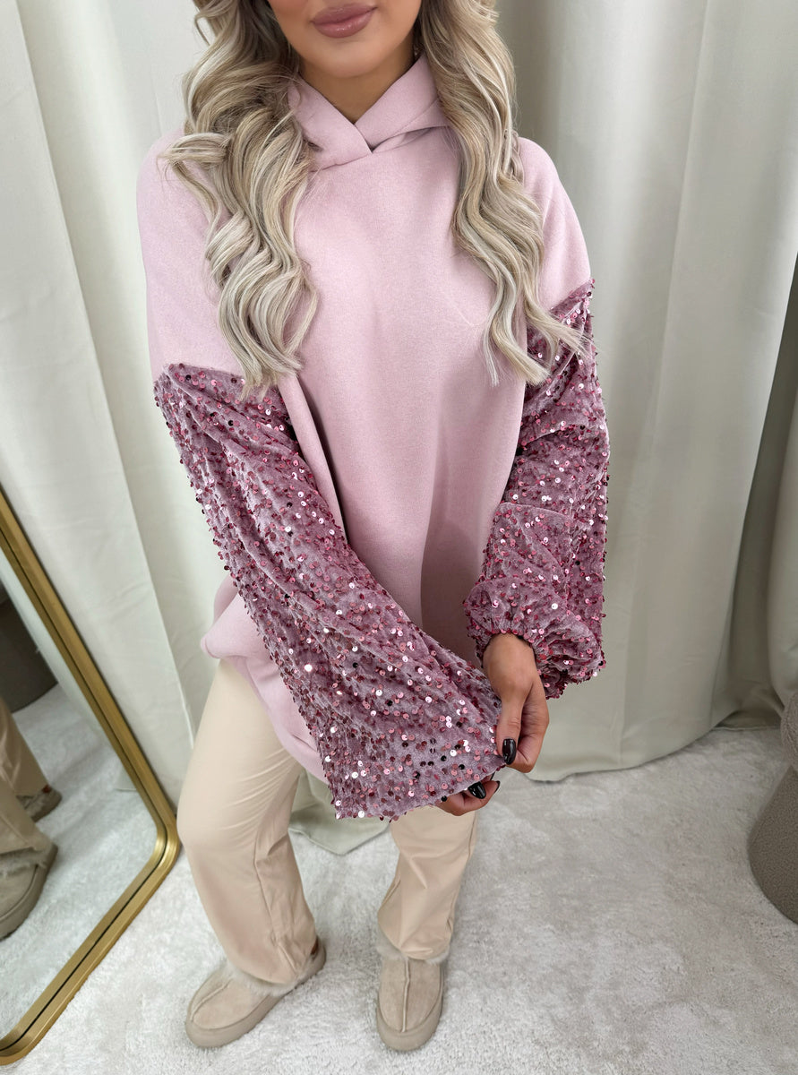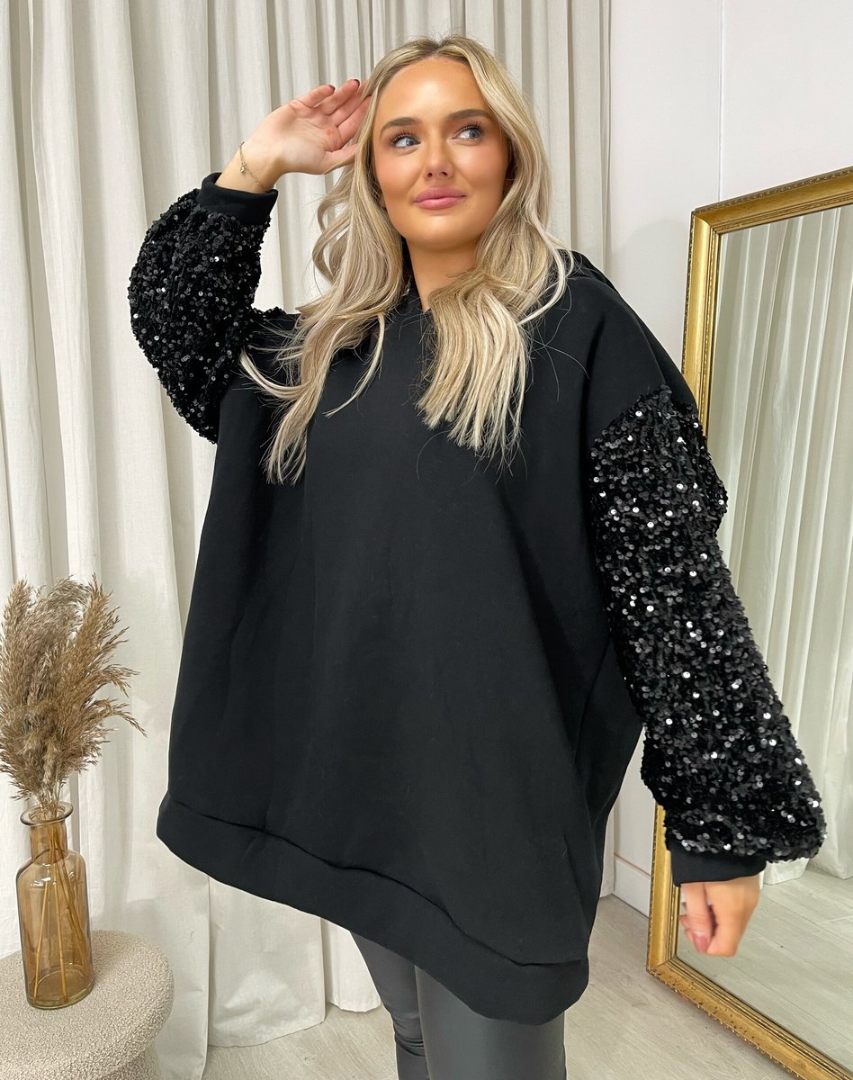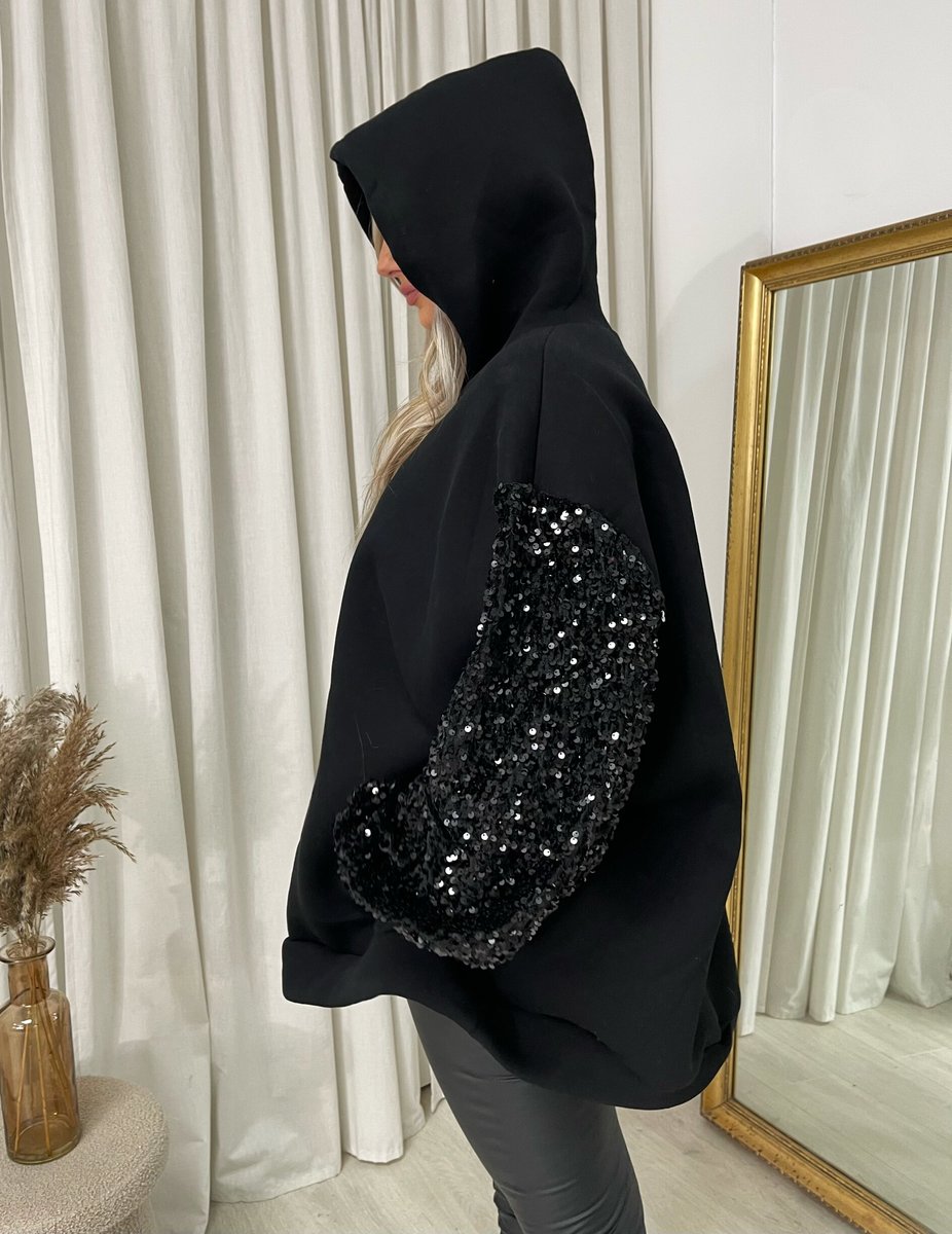Oversized Sequin Sleeve Knitted Hoodie Jumper